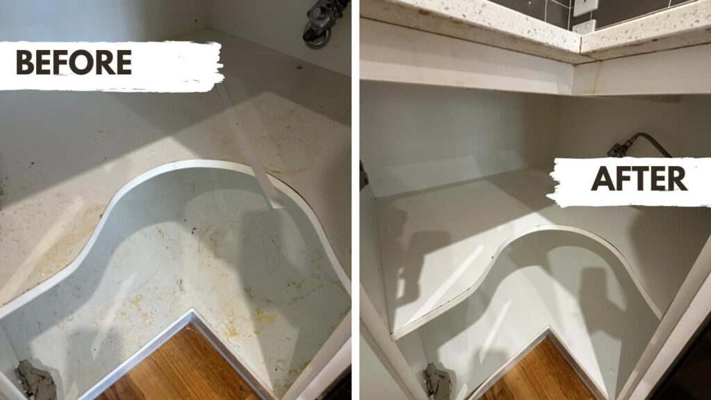 - Clean all cupboards and drawers inside and out